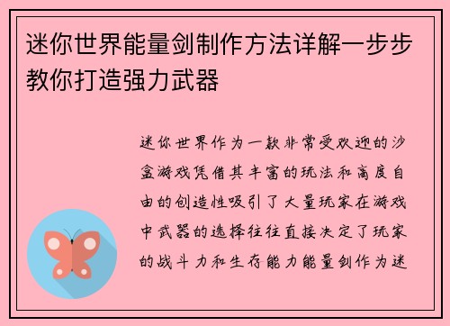 迷你世界能量剑制作方法详解一步步教你打造强力武器