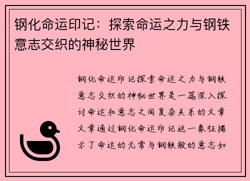 钢化命运印记:探索命运之力与钢铁意志交织的神秘世界